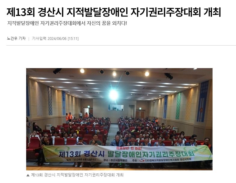 제13회 경산시 지적발달장애인 자기권리주장대회 개최: 경찰연합신문