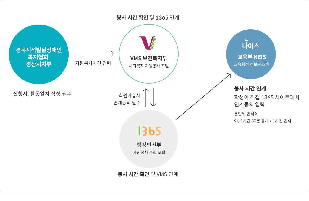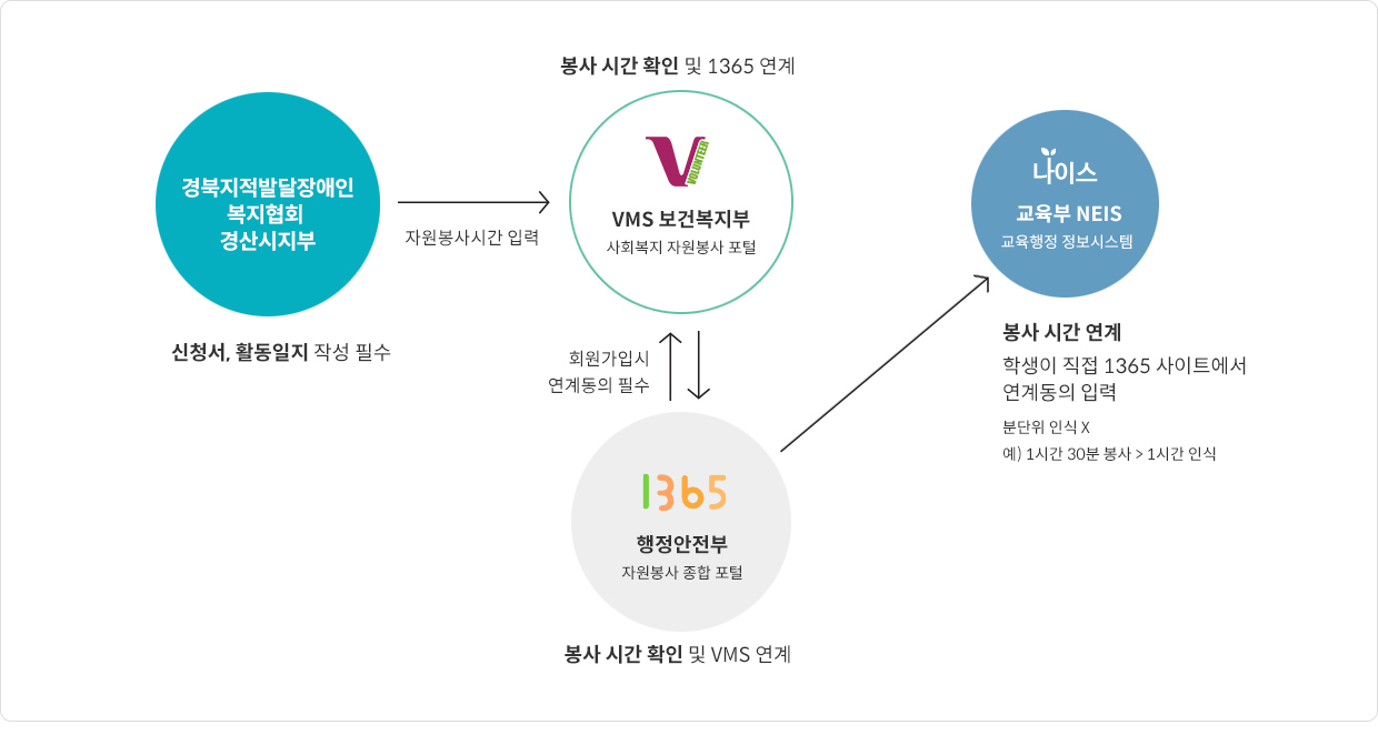 VMS와 1365 (자원봉사시간 연계 흐름도)