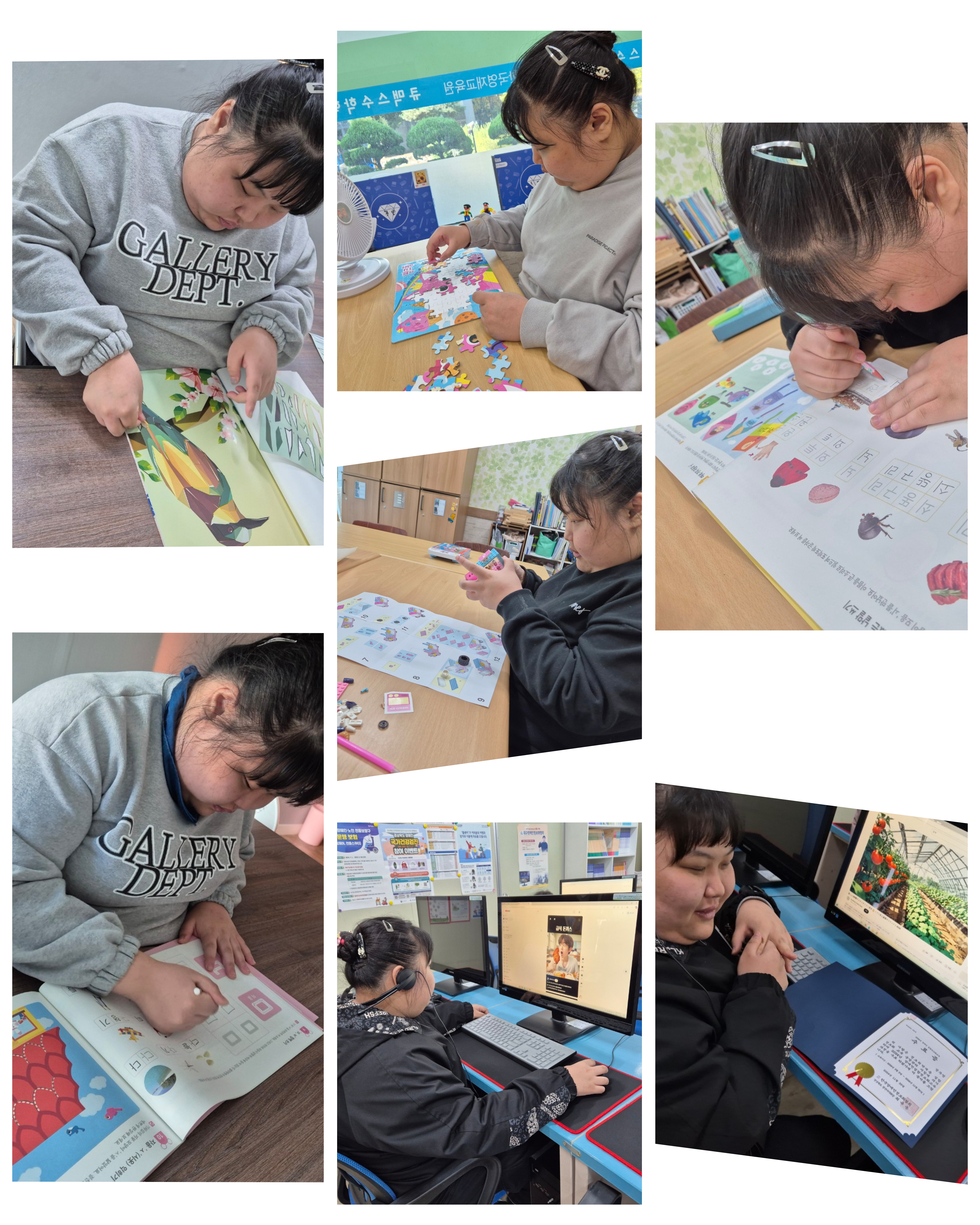인지활동: 스티커북, 퍼즐, 한글학습, 블럭, 수학습, 컴퓨터 수업